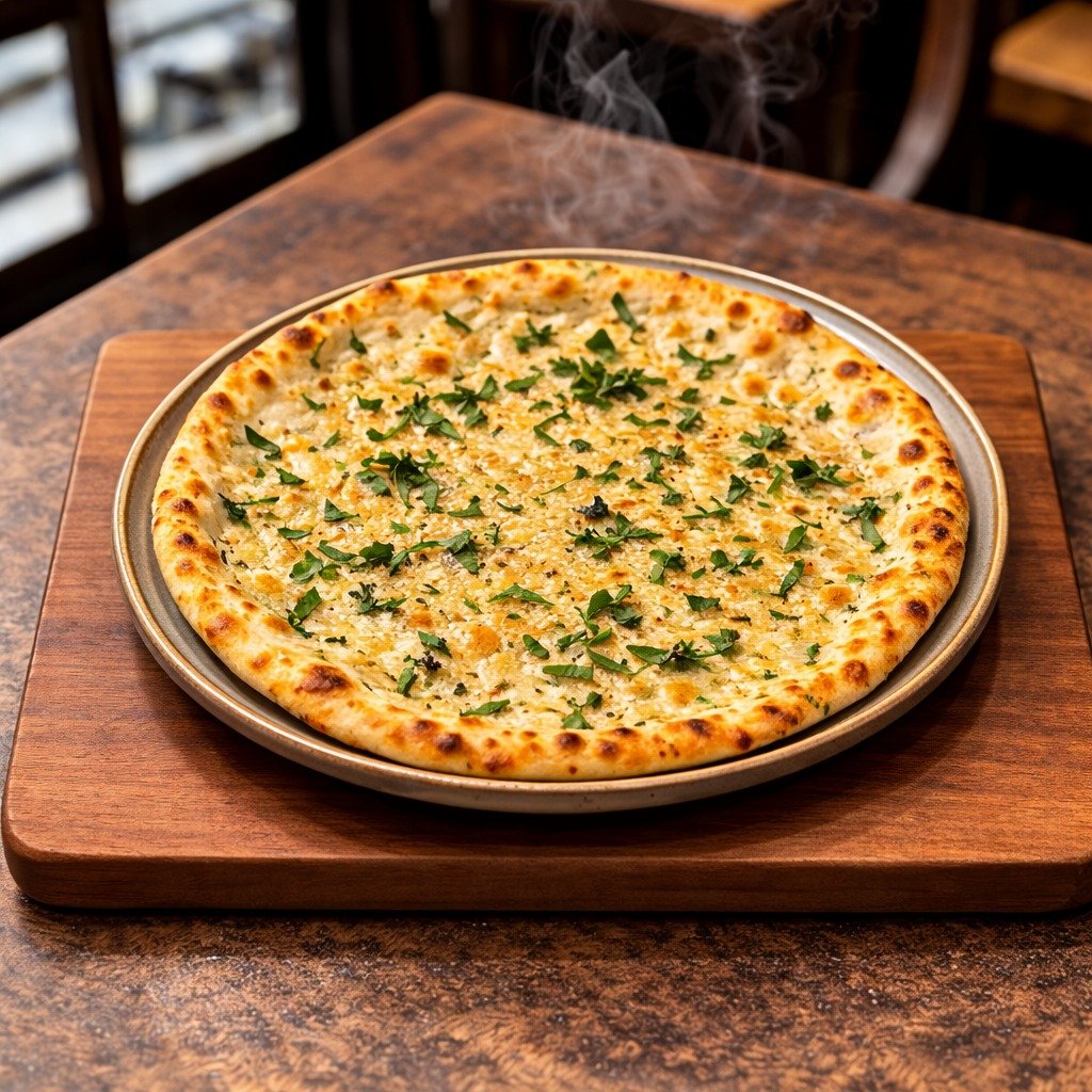 Soft, pillowy dough that is stuffed with a generous filling of melted cheese—often mozzarella or cheddar—and topped with savory minced garlic, cilantro, and melted butter.